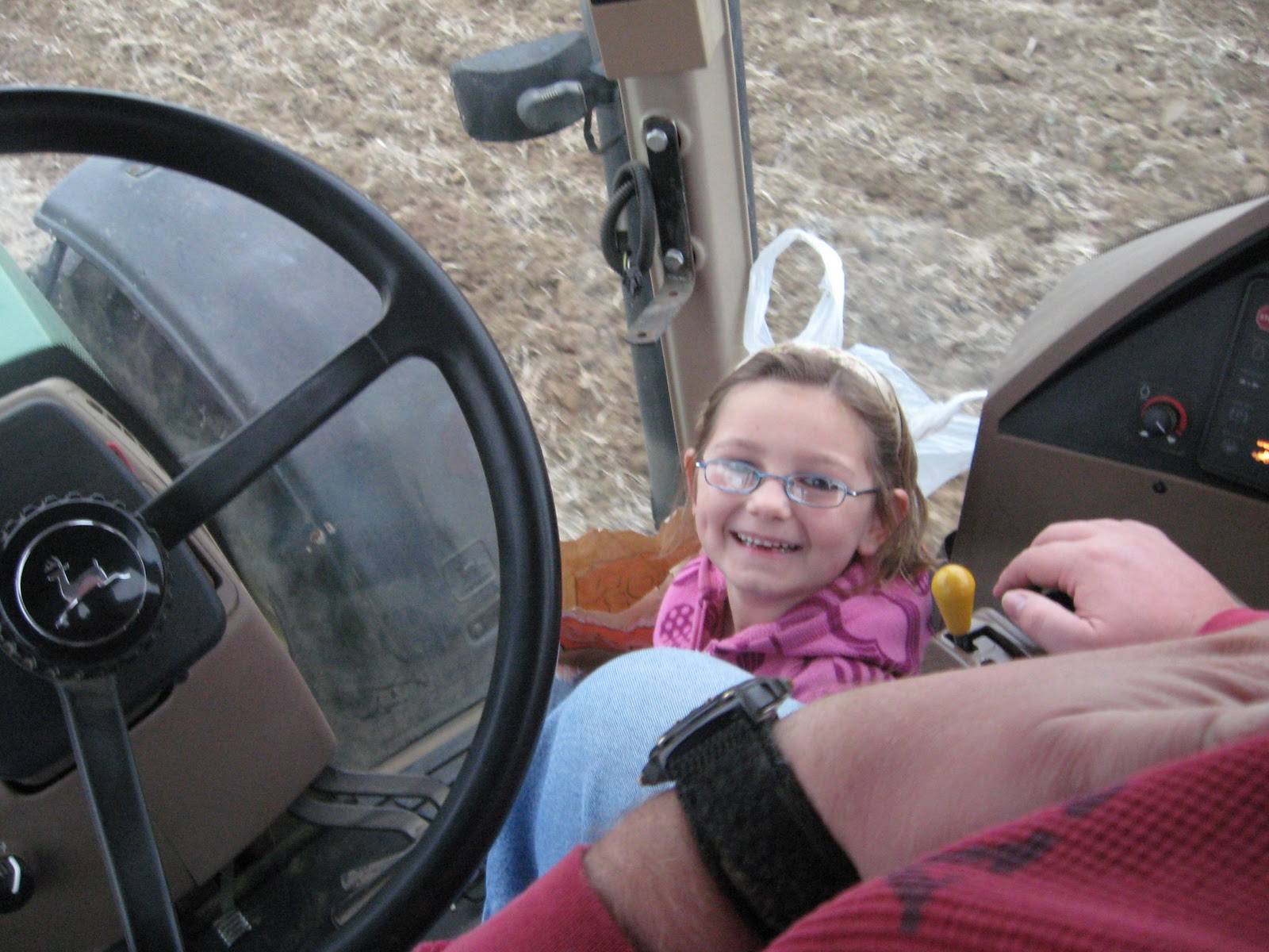 I rode along for a bit, so the kids sat in the floor. Yes, we did have a family of 4 all in a tractor.